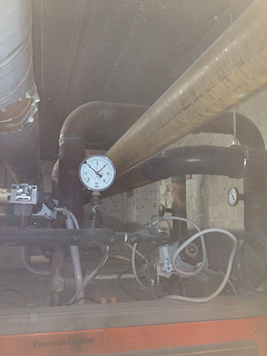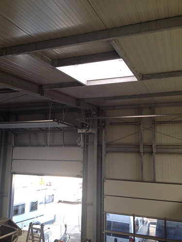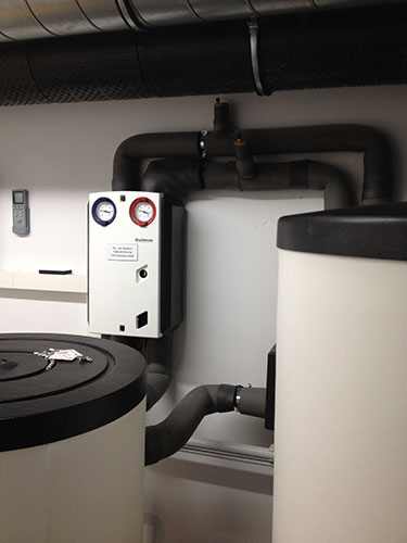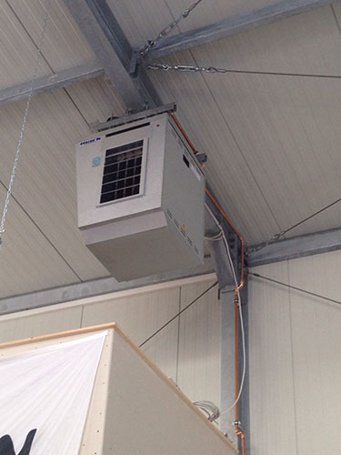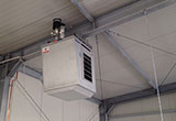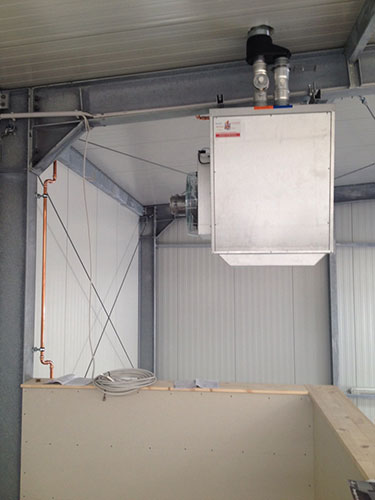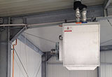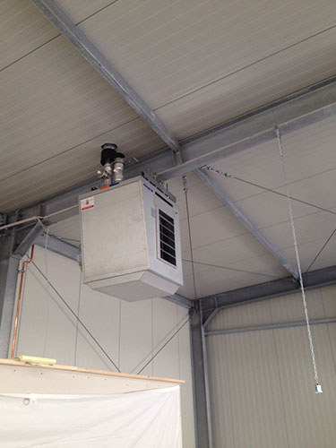Hallenheizung mit einem Raumluftunabhängigen Gaslufterhitzer mit Wärmerückführung.